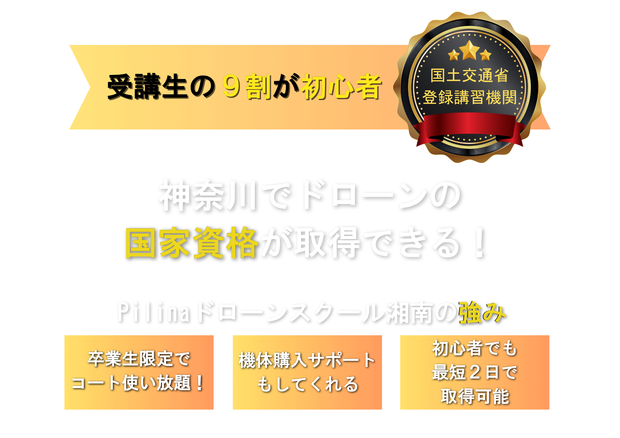 ドローン技術の発展には非常に高い関心が寄せられており、私たちの生活や産業において様々な可能性を切り拓くでしょう。そこで必要になってくるのがドローンパイロットです。2022年12月よりドローンの国家資格制度が開始され、今後さらに発展していくと思われます。Pilinaドローンスクール湘南では、講師と受講生、受講生同士でも繋がりを持てるような環境作りをしていきたいと思っています。相互にサポートし合ったり、情報や経験を共有したりして一緒にこれからのドローン産業を創っていけたらなと思っています。